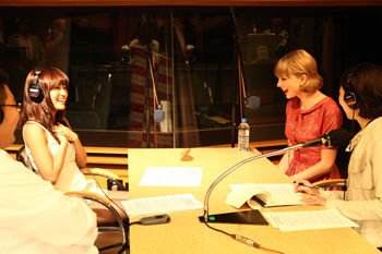 真っ赤なバラの花束を持ってテイラーを出迎えた前田に、「ありがとうございます。かわいい(笑)」と日本語で応えるテイラー。2人の笑顔にスタジオ内が華やかで和やかな空気に包まれると、対談がスタートした。まずは「なんと呼んだらいいですか?」という前田の問い掛けに、「友達からはテイと呼ばれているので、テイって呼んでください」とテイラー。これには前田も大喜びで、テイラーから「あっちゃん」と呼ばれると「夢みたい!」とはじけるようなスマイルをみせた。また、<SUMMER SONIC 2010>会場で初対面したことを覚えていたテイラーが、「ソロ活動をはじめられたんですよね。グッドラック!」とエールを贈る場面も。
