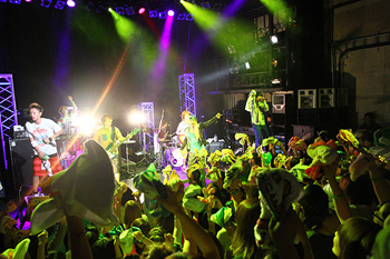 この日は約3時間にわたり22曲を熱唱、会場に集まった500人の観客は、掲げた手に巻いたタオルを勢いよく回転させ、一体となっていた。
