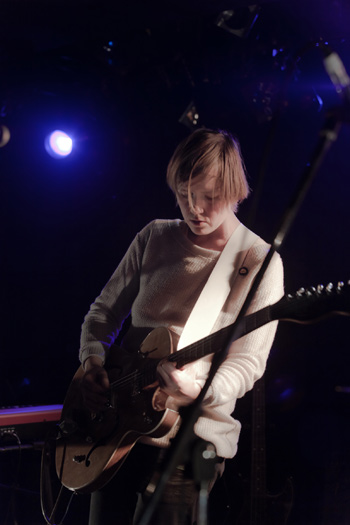 筆者は正直なところ、miaouについてリリース作品を聴くかぎりで、繊細で儚いガラス細工のような音楽を緻密に創っているバンド、という印象を受けていた。だが、ステージ上のmiaouは全く異なる印象を与えた。まず(あまりに単純な物言いだが)、音がデカイのがいい!そして比較的大音量なのに、無駄な音が全くない。高い高い天頂に向けて、キラキラ輝く鋼のように打ち上げられる長谷川真弓の骨太なエレクトリック・ベースを筆頭として、全メンバーの一音一音が、七色の光を放つプッチンプッチンの朝の雫のような潔さであふれている。