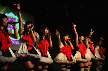 この日に向けて<ハチャメチャ武者修行>と題した定期無料ライブを秋葉原で毎週行い、学校が終わってから秋葉原でビラを撒いたり、はたまた遠征組のメンバーは1ヵ月東京に泊りこみで準備をしたり…と、涙ぐましいまでの努力が結晶となって、この日のティーチャーに届いたと言えそうだ。