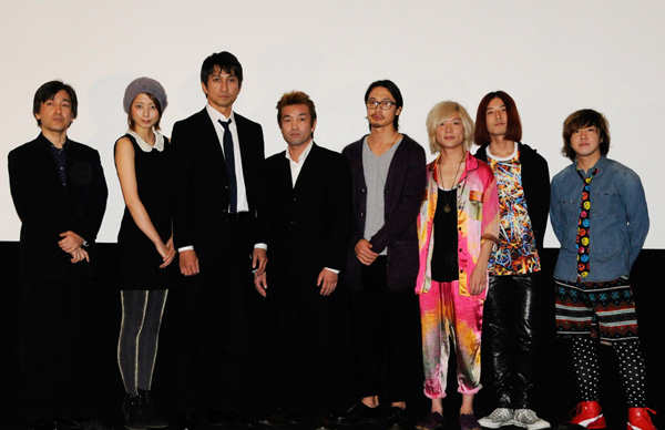 映画『名無しの十字架』初日舞台挨拶が12月1日に銀座シネパトスで行なわれ、主題歌「やぁ、野良犬。」を歌うカラーボトルが出席した。