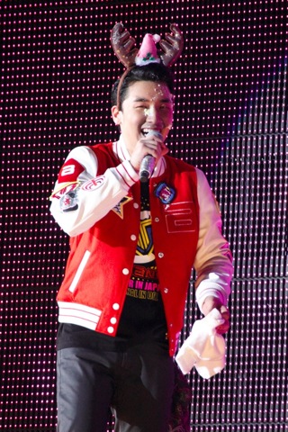 終盤といえば、アンコールで、V.Iの22歳の誕生日(12月12日)をお祝いするケーキも登場。5万5000人の日本のファンとメンバー、スタッフを前に目を潤ませるV.I。「僕は日本でめちゃめちゃ頑張ったんですが、日本のみなさんにほんとに感謝してます。来年、もっと日本で頑張ります!」と、抱負を熱く語ったまではよかったが、そうはいかないのがBIGBANG。SOLが情感たっぷりに(むしろ過度に)熱唱する「ハッピーバースデートゥーユー」を受けて、T.O.Pからはパイ投げの要領でV.Iにケーキの洗礼。