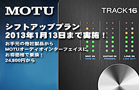 ハイ・リゾリューションは、米国MOTU社のオーディオインターフェイスを割引価格で提供する他社製品からの乗り換えキャンペーン「MOTUシフトアッププラン」を、2013年1月7日まで実施している。