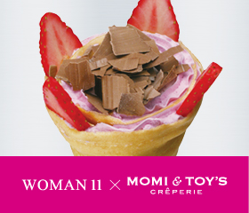 『WOMAN11』リリースを記念して、限定10,000食のコラボクレープ発売! 大人気『WOMAN』シリーズ最新作と、とろけるクレープでおなじみのモミ&トイズがコラボレーション! 特製ふわっふわの苺ホイップクリームと、ほんのりビターチョココポーが、WOMAN世代のかっこいい女性をイメージ!WOMAN世代の全ての女性に、「HAPPY」を運ぶクレープです。