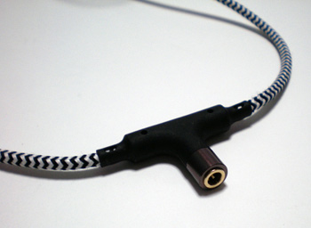 ▲どちらのモデルにもケーブルの途中にデイジーチェーンのためのアダプタが付いている。ここに別のイヤホン/ヘッドホンを挿せば、音楽が共有できる。