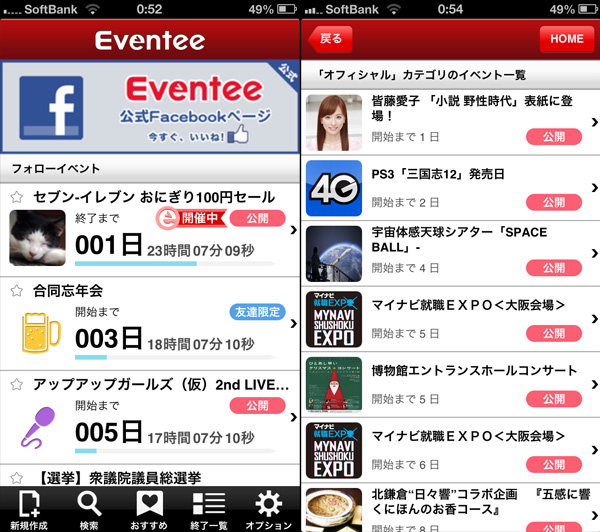 いろんなイベントをカウントダウンしてくれるiPhoneアプリ「Eventee」にタレント情報や就活、セール情報など大幅追加