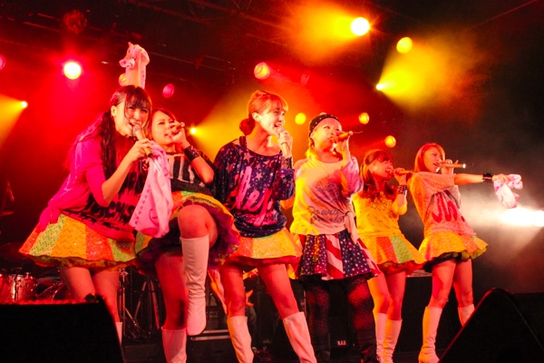 後半からは生バンドを従えてのライブになり、彼女たちの持ち味であるパワフルな側面が引き出されていく。どんどん熱気が増していく中で、ゲストに元・メロン記念日の大谷雅恵がステージに呼び込まれる。こちらもかねてから予告されていたものだが、大谷を迎えて6人で歌った「お願い魅惑のターゲット」のテンションの高さと迫力は凄まじいものがあり、会場内にいたすべての人が自分の体温が上がるのを実感したのではないだろうか。ライブ会場全体が共振しているような感覚が確実にあった。3曲のコラボを終え、大谷を送り出した後はアカペラスタートの「ヤングDAYS!!」。本編はここで一旦終了。