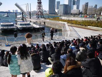 自身が歌って踊る「なめこのうた」で、<NA NA NA な な なめこ♪>のリズムに乗せ両腕を上下にフリフリ踊る遥ちゃんのそのダンスは愛らしく、詰めかけたファンは全員大盛り上がり。小さな子供たちもたくさんステージに出て、遥ちゃんとのダンスを一緒に楽しんだ。