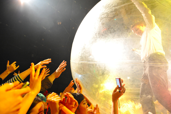 登場するやいなや、ブブゼラ(かつてW杯で話題を呼んだ南アフリカの楽器)をフロアにばらまき、会場は一瞬にしてお祭りムード。凍える外の空気なんて嘘のよう。さらには、途中でバルーンのなかにディプロが入ったり、フロアで熱狂していたオーディエンスがステージに上がり過激なセクシー・ダンスを披露するなど、何でもあり。ひたすらサウンドシステムとにらめっこしていた以前とはガラリと変わった、エンターテインメント性の高い演出に、見飽きることがなかった。