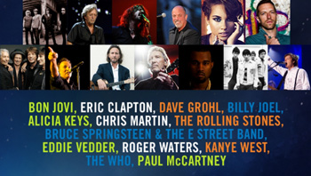 オープニングはブルース・スプリングスティーンが登場、最新作『レッキング・ボール』に収録され、まさにチャリティの趣旨にぴったりの“希望と夢の国”を追い続ける「ランド・オブ・ホープ・アンド・ドリームス」でスタート。途中、被災地でもあるニュージャージーの同郷のジョン・ボン・ジョヴィを呼び込み「明日なき暴走」で共演。次にピンク・フロイドのロジャー・ウォーターズが登場し、名盤『ザ・ウォール』や『狂気』からのナンバーを披露。最後にパール・ジャムのエディ・ヴェダーを呼び込み名曲「コンフォタブリー・ナム」を共演。続いて登場したのはニュージャージー出身のボン・ジョヴィ。今度はブルース・スプリングスティーンがアコースティック・ギターを持って飛び入りし「フー・セズ・ユー・キャント・ゴー・ホーム」を共演。