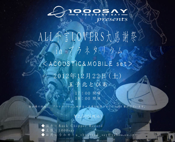 1000say、プラネタリウムでの“感謝祭”開催迫る