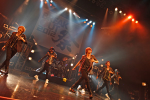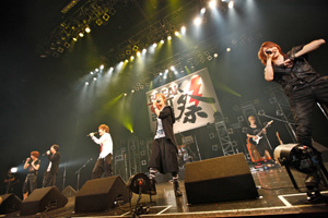 最後に現れたのは、“歌ってみた”で人気を集めた歌い手の蛇足、ぽこた、みーちゃん、けったろ、koma’n(こまん)の5人によるニコニコ動画発の√5。この日のステージはデビュー曲「MERRY GO ROUND」で幕開け。1曲を5人5様の歌い方で、それぞれの鮮やかな声を次々とリレーさせて歌っていく歌唱スタイルは彼らならでは。そんなオリジナルな歌で次々とヒットシングルを披露し、観客を魅了。「僕たちは踊りとか踊れないですけど、頑張ります」とぽこたのトークの後に披露されたのは新曲「新星Ω神話(ネクストジェネレーション)」。これまでとは違った√5のカッコよさがぎゅっと凝縮された楽曲だった。最後は「きたー!」とお客さんも大喜びの「千本桜」。オーディエンスのからの間の手のかけ声もばっちり決まってライブは大盛り上がりで終演を迎えた。