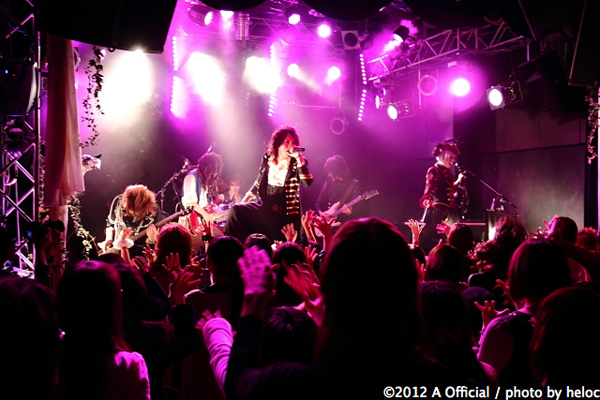 そして、アンコールではA(エース)のライブでお馴染みの暴れ曲「MASQUERADE」「カナリア」「Night Of The Knights」「今宵、銃声が聴こえない街で」「Shangri-la」などが演奏されると、待ってましたとばかりに全員イスから立ち上がり、総立ちで2012年最後のワンマンライブを締めくくった。