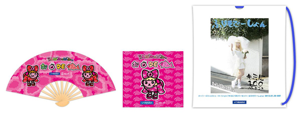 豆しぱみゅぱみゅ扇子、豆しぱみゅぱみゅミニタオル、きゃりーぱみゅぱみゅ巾着ビニールバッグ