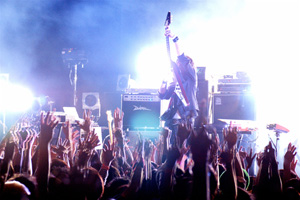31日のライブでは、1月9日にリリースするアルバム『EMBRACE』からビートルズのカバー「HELTER SKELTER」をはじめ、ライブではおなじみの「KICK IT OUT」など、いつも通りのBOOM BOOM SATELLITESのパフォーマンスを見せ、会場を沸かせた。