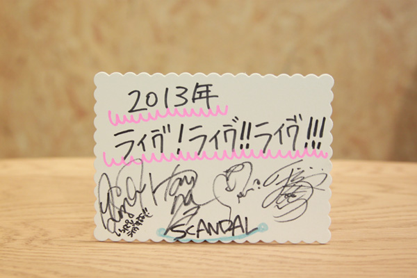 今年2013年3月3日(日)には念願だった大阪城ホールでのワンマンライブ、そしてアジアツアーの開催と、まさにライブ尽くしの1年になりそうなSCANDALからは、その意気込みが漲るメッセージが届きました。