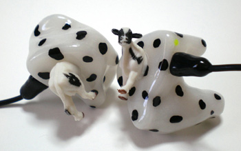 そしてもうひとつ、earmoのデザインに関するバリエーションと許容量の広さが他のカスタムIEMブランドとは異次元。遊び心満載のスタッフがとにかくポップでキャッチーないろんなアイディアを提供してくれる。アーティストがスワロでキラッキラにデコるように、フェイスプレートは遊びのキャンパス、そこには既成概念も固定観念も、やってはいけないというルールもない。思いっきり遊べば『原子心母』もびっくりの牛カスタムや、耳へはめるだけで思わずジョジョ立ちしてしまいそうなギオン・モデルなどが、自然に飛び出してくる。その発想の豊かさと自由度があれば、どんなカスタムだってできてしまうことだろう。
