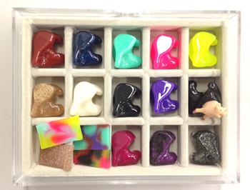 earmoのカスタムは、非常に個性的だ。いわゆるマニア向けではなく一般の音楽好きを対象にした製品設計とラインナップをそろえている。「外耳道が小さすぎて店で売っているイヤホンはどれも耳に合わない」と悩んでいたとある女性は、これまで経験したことのなかった満足感をearmoで手に入れたという。earmoが追及するサービスは、まさにそこにある。「既製品じゃなくてね、耳にぴったりあっていれば音もよく聞こえるし、耳から落ちないし、デザインも楽しめるでしょ?もちろんプロが使ってもいいけど、普通の皆さんに使ってほしいですね。将来はもっと安くしたいです。」とはオーナーの弁だ。