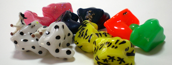▲こちらは駄菓子屋や屋台の夜店で打っているスーパーボールのような原色カラー。写真ではくすんで写っているけれど、現物はバッキバキの蛍光カラー。