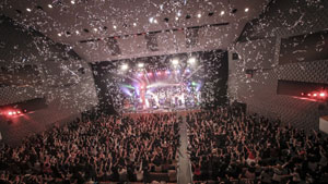 30分の休憩の後、後半戦はMoranからスタート。バンドとしての本イベント出演は3度目なものの、一瞬たりとも動きを止めない華やかなパフォーマンスは、6月にvivi(G)とIvy(B)を迎えて5人編成となった新生Moranならではのもの。それに応え客席でも、色とりどりに煌めくフラッシュリングの華が咲く。また、来たる2月に発表される1stアルバム『ジェンガ』から、Hitomi(Vo)いわく“苦しくなるくらい好きになれる対象がいるってことが薔薇色”という想いを描いた「薔薇色の地獄」も初公開。センターのHitomiに弦楽器隊が一人ずつ寄り添っていくアクションにソロの引き継ぎと、洒落た演出が独自の美学を感じさせるジャズ調のナンバーで、そんな麗しいフォーメーションは後半のアップチューンでも同様だった。ラストは“今年も、この曲をどうしてもココで歌いたい”と「同じ闇の中で」をプレイ。楽曲が内包する優しさと激しさが高い天井に立ち上り、ホールならではの美しいカタルシスで場内を満たした。