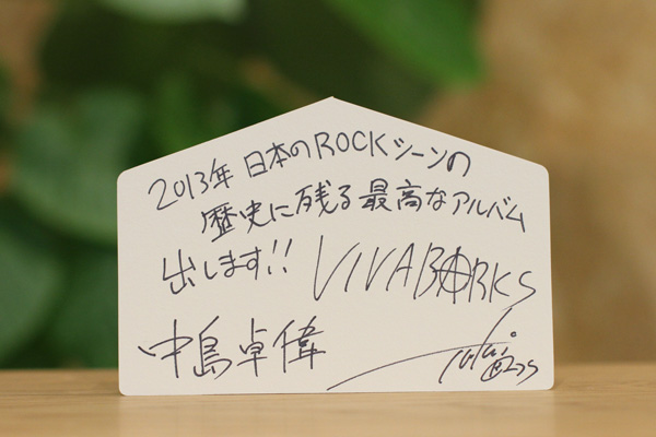 気合いと熱量が伝わってくるような、ほとばしる想いをしたためて送ってくれた中島卓偉。ロックシーンに残る名盤、卓偉なら必ずややってくれることでしょう!