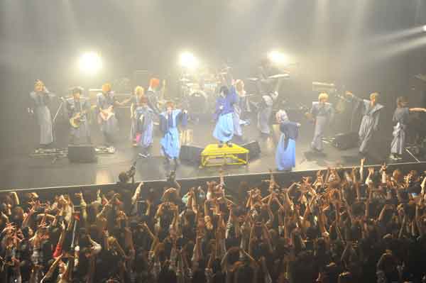 1月4日(金)、Shibuya O-EASTにて行われ大盛況のうちに終了したResistar Records Presents<治外法権-新春だょ全員集合!!2013->。会場には“れ神社”が建立され、メンバーが作成した個性豊かな狛犬が展示されるなど、開演前から長蛇の列ができていた。ライヴもオープニングから、DOG inTheパラレルワールドオーケストラ、BugLug、Blu-BiLLioNの全メンバーが袴で登場して新春口上を披露したり、各バンドのライヴと交互に豪華セッションが行なわれるなどお正月ムード満載で、会場を多いに盛り上げた。
