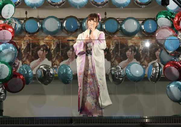 AKB48初の演歌歌手として、昨年2012年2月1日にシングル「無人駅」でソロデビューを果たした岩佐美咲が、1月9日にリリースするソロ2ndシングル「もしも私が空に住んでいたら」の発表イベントを、1月7日(月)新橋SL広場のラ・ピスタ新橋で開催した。