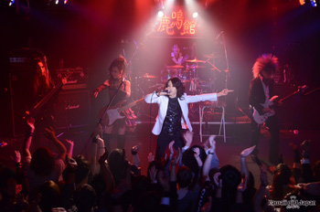「Daybreak~13月の色彩~」では、「いくぜ鹿鳴館!」とジョウの誘いに会場がジャンプで応戦。ジョウ、猶人、miko、乙魅がステージから客席へ体を乗り出し煽っていく。「VANGUARD」「本能」「二つの声」などライブで必須のアップナンバーを立て続けに披露し、年明け早々のとがったセットリストに会場が真夏のような熱気に包まれた。