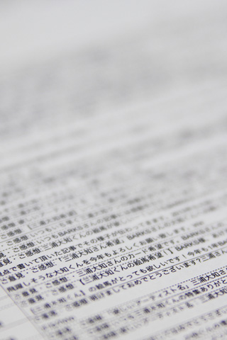 大知:(笑)。そうなんですかね。いやー、だとしたら嬉しいですね。……(再び紙に目を落とす)……「よろしくお願いします。」で終わる方、多いですね。すごいちゃんとしてる。