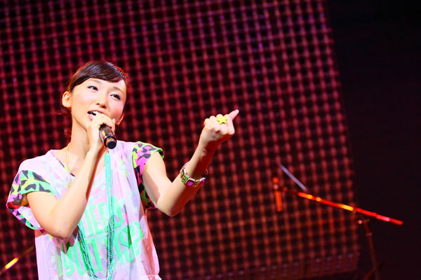 デビュー以来初となるワンマンライブは、生バンドをバックに歌唱。本番前の楽屋では「緊張で震えていた」と語りながらも、オープニングで新曲「世界は教室だけじゃない」を披露し、会場の熱気を上昇させる。その後も力強く明るい歌声で「ボカロがライバル☆」、「君が待つ世界の果て」、「永久星座」、「Destin Histoire」など全11曲を披露。