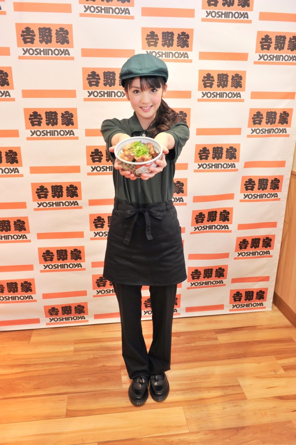 道重さゆみ、吉野家で一日店長。「(“さゆ丼”は)ファンの方々から広まったもの。すべてファンの方々のおかげ」