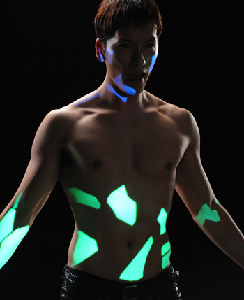 KEITA、眼光鋭く筋肉にプロジェクションマッピング