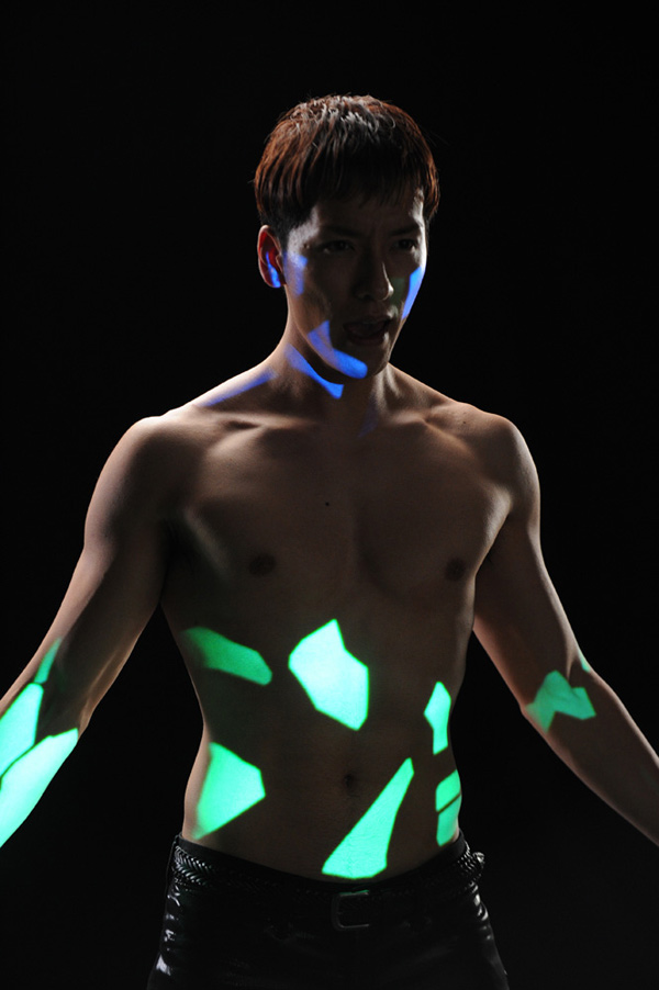 KEITA、眼光鋭く筋肉にプロジェクションマッピング