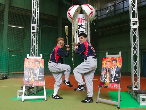 【イベントレポート】「背番号31」の男も代打に登場。サンドウィッチマン、DVD大ヒットを狙いピッチングマシンに挑む
