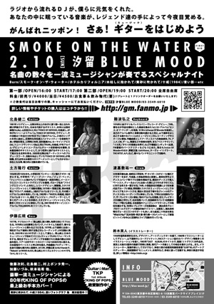 後藤次利、村上ポンタ秀一を始めとする一流ミュージシャン達によるチャリティープロジェクト<Guitar☆Man>が、2月10日(日)に東京・汐留のBlue Moodにて第一弾ライブイベント<SMOKE ON THE WATER>を開催する。