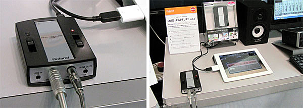 シンプルな2イン/2アウトのオーディオインターフェイス「DUO-CAPTURE」は、新たにiPadとの接続に対応し、「DUO-CAPTURE mk2」として登場した。最大24ビット/48kHz対応で、電源はバスパワー。入力はステレオミニと標準タイプのMIC/GUITAR、出力は標準タイプのヘッドフォンおよびステレオミニのヘッドフォン/ラインが用意される。付属ソフトには最大32オーディオトラックが使用できるDAWソフトの「SONAR X1 LE」を用意。iPadとの接続にはApple Camera Connection Kitを使用する。発売は2月下旬予定。想定実売価格は8,000円前後。
