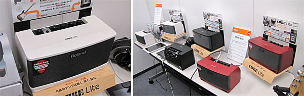 ▲デモでは、「『CDのようにいい音』というよりも、いいアンプの音。ギタリストがライヴで大きなアンプで鳴らす音圧感が小さい音で得られる」と紹介(写真左)。CUBE Lite MONITORはホワイトのみのラインナップ(写真右)。