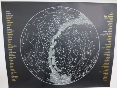 これは星座図ポスターです。星の部分は蓄光塗料で塗られていて、暗い場所だと光ってきれいジャン。