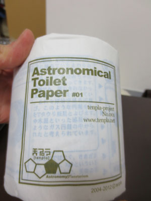 宇宙飛行士用? トイペ。様々な宇宙雑学がプリントしてあります。トイレで宇宙の雑学をインプット。