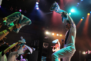 本編終盤、鉄拳によるパラパラ漫画PVの映像をバックに「名もない毎日」を熱唱すると、歌と映像のコラボレーションに会場の感動値がぐっと高まる場面も。