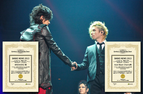 Acid BREAKERZ Cherryのニュースは、Acid Black CherryとBREAKERZがお互いのデビュー5周年を記念し共同で行なったスペシャルコラボライブ<Acid BREAKERZ Cherry 69-sixnine->の様子を伝えるライブレポートの記事だ。yasuとDAIGOの交流から生まれた非常に魅力的なライブイベントだったが、そこにまさかのhyde降臨というスペシャルすぎるサプライズも加わって、その記事はネット上で一気に拡散、めでたく<BARKS News Award>2013年1月マンスリーアワード獲得のNo.1邦楽記事となったというわけだ。