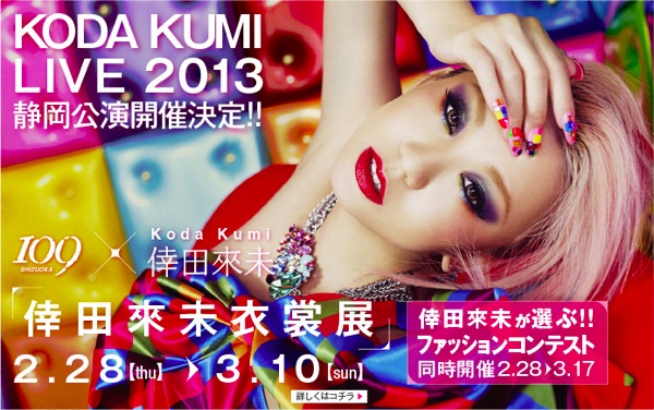 開催期間は2月28日から3月10日まで。期間中、静岡109には2012年に行なわれた<KODA KUMI Premium Night~Love &Songs~>で着用している超貴重な衣装やパネルが展示される。さらに豪華景品が当たるファンッションコンテストも開催されるとのこと。