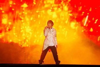 そしてやはり、スペクタクル巨編とも呼べるコンセプチュアルなステージの中心には、Maydayの楽曲がある。事実、ステージから発せられるサウンドは実にリアルなものだった。いわゆるハードロックの激しさを感じさせつつも、じっくり聴かせる演奏力を併せ持ち、楽曲そのものは非常にキャッチー。ライブのダイナミズムに支えられながら、全ナンバーが口ずさめるほど覚えやすい旋律にメロディーメーカーとしての才能を実感させられる。「星空」「溫柔」といったバラードナンバーでは、5万人のシンガロングが響き渡り、ステージ中盤に披露された「笑忘歌」でのアコースティック・アレンジ、生のホーンセクションを加えた「瘋狂世界」「三個傻瓜」では、カラフルで厚みのあるバンドサウンドが堪能できた。