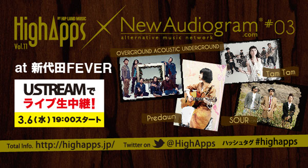 3月6日(水)に東京・新代田FEVERにて開催される<HighApps×New Audiogram #03>の、Ustreamでのライブ生中継が決定した。