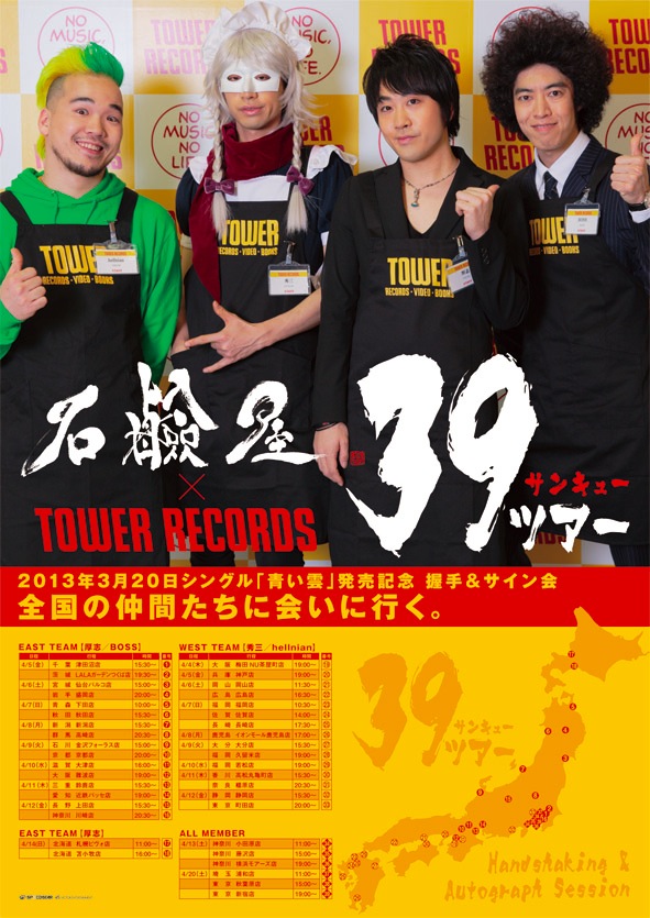 石鹸屋、全国のタワレコ39店で怒涛の握手&サイン会ツアー開催
