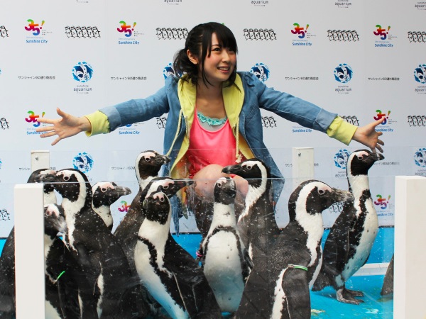 SKE48・高柳明音、ペンギンとレッドカーペットをヨチヨチ歩く