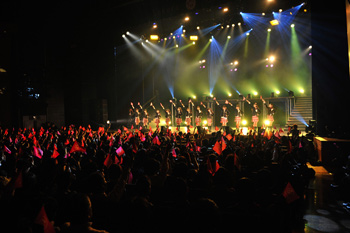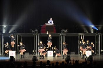 「すごい!国際フォーラムだよ!」「広~い」と3階席まである観客席を見渡しながら感動を露わにしつつ、「2012年度、集大成のライヴですからね、私たちの1年間の成果をお見せできるように、今日はみんなで一所懸命がんばりますので、よろしくお願いします」と力強く宣誓。新入生との初対面や<TOKYO IDOL FESTIVAL 2012>をはじめとするイべント出演時の様子や学院祭など、この1年のトピックがVTRでプレイバックされた。