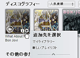続いて検索。まず、お目当てのアーティスト、楽曲は画面右上にある虫めがねアイコンの検索機能でカンタンに探し出せる。海外アーティストでつづりがわからないという場合でも一部だけ入力すれば候補がリストアップされるし、カタカナでもOKだ。アーティスト名をクリックすれば、ディスコグラフィーが一覧される。アルバムや楽曲は「マイライブラリー」に登録すれば、次回聴く際に再度検索する手間が省ける。マイライブラリーはブラウザでいうブックマークのようなものだと考えればいいようだ。