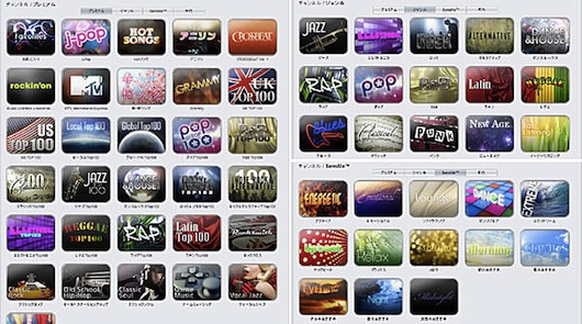 ▲BGM的に流すならチャンネルの再生がオススメ。さまざまな切り口でセレクトされたチャンネルを多数用意。プレミアムチャンネルには、MTV U.S.の最新トップチャートや、音楽ゲーム「ロックスミス」のチャンネルなどもある。