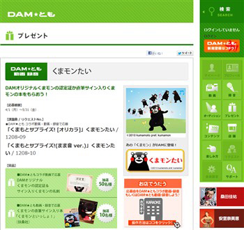 その課題曲は「くまもとサプライズ!」の“オリカラ”バージョンと“まま音”バージョンで、<DAM★ともコラボ動画>で応募するとDAMオリジナルくまモンの認定証&サイン入りくまモンの名刺、<DAM★とも動画・録音>で応募するとくまモンの直筆サイン入り本「くまモンといっしょ!」が当たる。オリジナルグッズゲットを目指してチャレンジして欲しい。